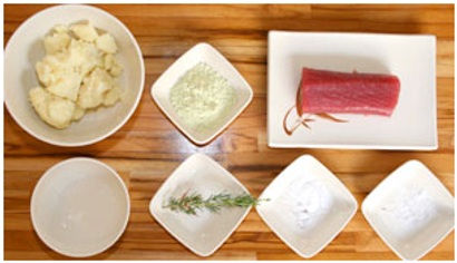7- Coloque o atum sobre o purê, acrescente o sal a gosto e decore com o ramo de alecrim.