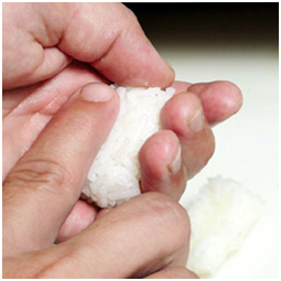 1- Faça um bolinho como arroz.