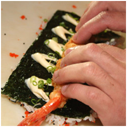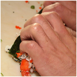 6- Enrole, fazendo uma leve pressão, para que fique em forma de sushi.