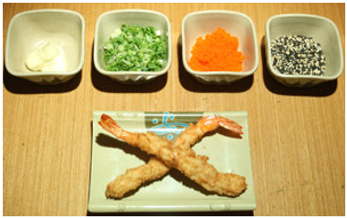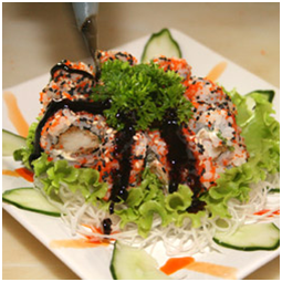 8- Sirva com molho tarê. Decore com pepinos, alface, nabo desfiado e um pouco de ovas de arenque. Está pronto!